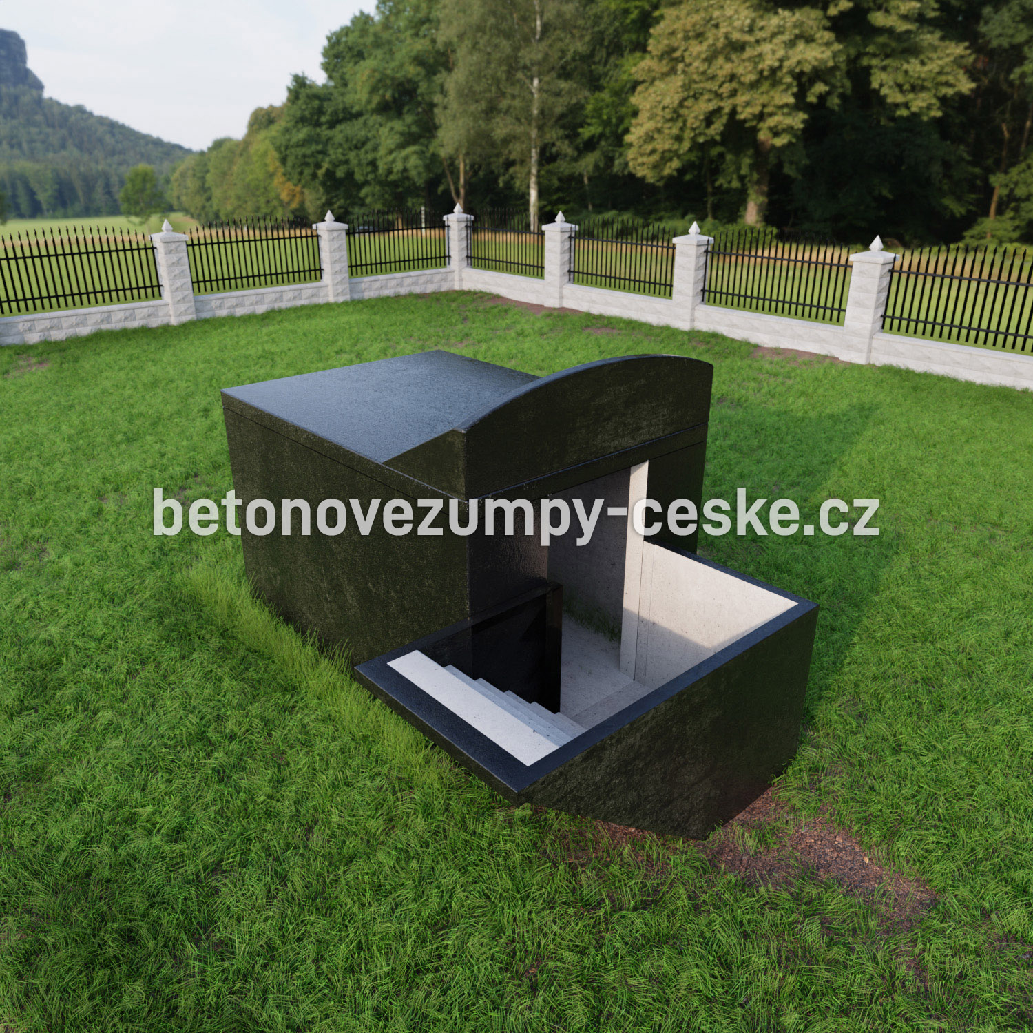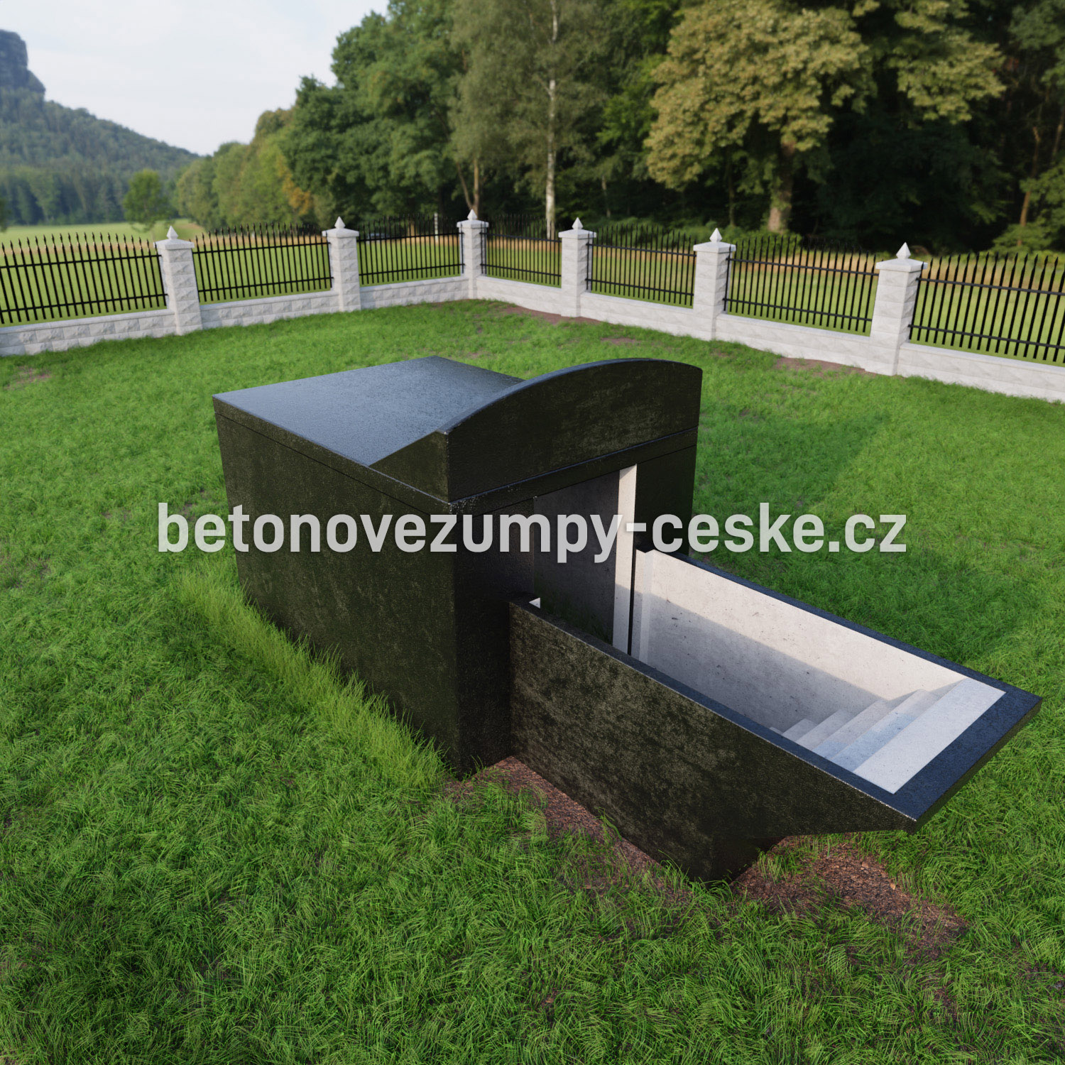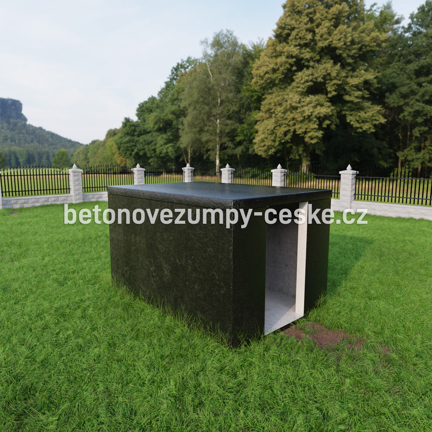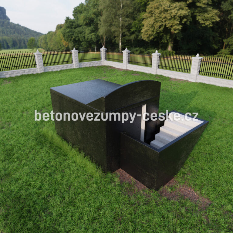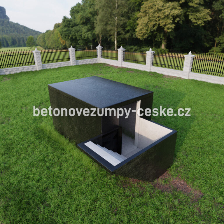 Prefabrikovaný betonový sklep s bočním vstupem a rovnou střechou lze snadno přizpůsobit různým typům pozemků. Díky přímému vstupu je oblíbený zejména tam, kde je kladen důraz na pohodlnou obsluhu a bezbariérový přístup.